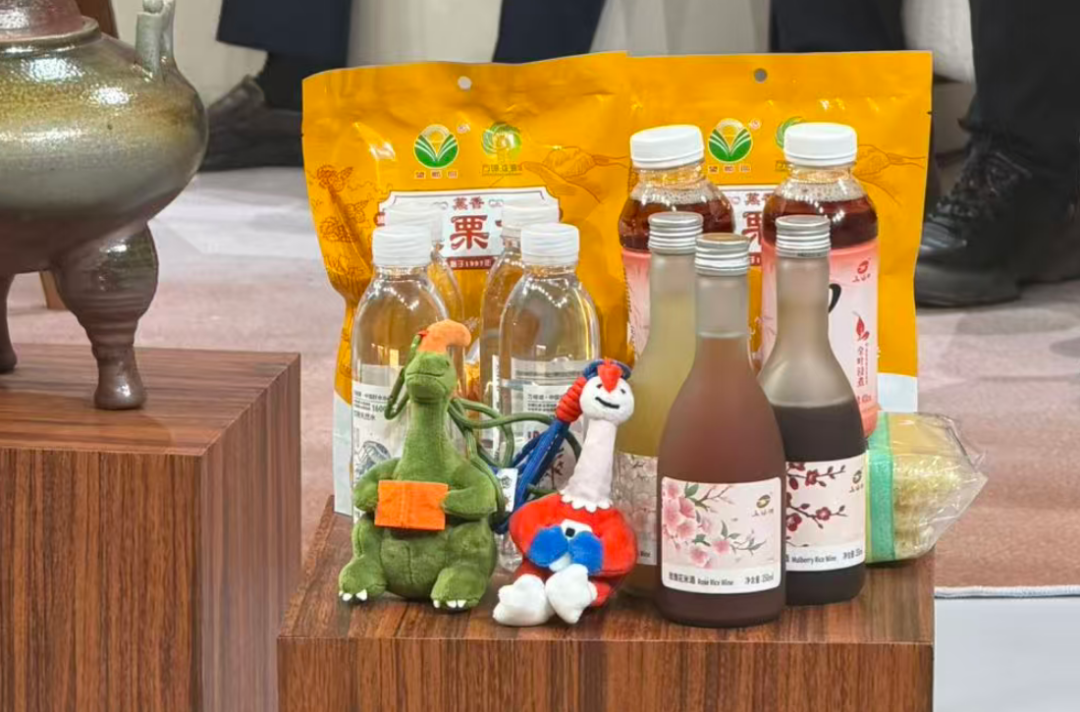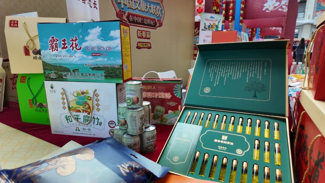 线下展区内,河源板栗仁、霸王花米粉、和平腐竹、龙川茶油、忠信黑蒜等一批地道农优特产品集中亮相,凭借优良品质与浓郁地方特色,收获现场市民与游客广泛青睐,大家纷纷驻足品鉴、询问选购,人气持续高涨。与此同时,河源 “四小龙” 系列文创同样圈粉无数,可爱玩偶、潮流背包、实用保温杯等多款好物兼具创意与实用性,既展现河源恐龙文化独特魅力,又贴合大众日常消费需求,成为展区内一大亮点,进一步擦亮河源文旅文创品牌。